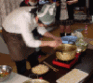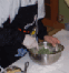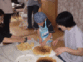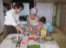 | おとなも子どもも大好きなのは”美味しい匂い”・・・というわけ で、早速ホットケーキとフレンチトースト作りに挑戦。子ども達の 張り切りようはハンパじゃありません。日頃やんちゃなM君も真剣 なまなざしでした。 |