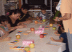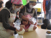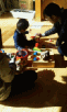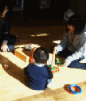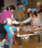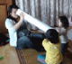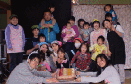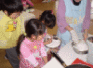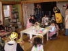 ![]() 小さい子はお姉さん達とお遊び。はじめはママから離れな かった子も、だんだん慣れてきました。 |