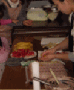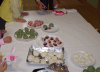 はじめに作ったのは”トロフィエ” かんな屑が名前の 由来だとのこと。ちっちゃく丸めた生地を押しつぶすよう にしながら転がしていくと、クルクルって巻いていくはず なのですが・・・なかなかうまくいかなくて、気づいたら無 言で集中してました(笑) |