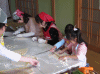 | 少し不格好なのやら大きいの小さい の、いろいろできあがりましたが、苦 心惨憺してできあがった餅は格別お いしく感じられました。 |