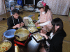 ![]() 早速みんなでお昼です。 『菊池みやげ店特製柚子味噌』をたっぷりかけたこんにゃくとふろふき大根もあって、ふだん小食な子ども達も、たくさん食べていました。もちろん、お母さん達がお腹いっぱい食べたのは言うまでもありません(笑) |