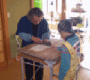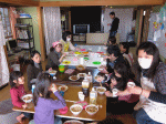 | 初登場、菊池先生による郷土料理の伝授! 元々レクリエーションの先生なので、みんなを 楽しませようというサービス精神旺盛なんです。 おっきく手順がかかれた模造紙が貼られ、参加 者全員やる気満々になりました。 ![]() 足で踏んだ生地を更にしばらくねかせます。 その間にけんちん汁の野菜を切りました。 主婦が大勢だから手際も良くてあっという間に 準備完了です。 |