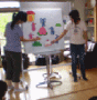 | 今回は、武藤先生によるセラピー。 まず、12月にできなかった『心理ワーク』から はじめました。簡単な質問に答えて、自分の 【前向き力】【コミュニケーション力】【自己変 革力】をチェックしようというものです。先生の 解説を聞くと、「なるほど」「そうそう」「確か に・・・」と皆かなり納得した様子。自分の力 を自覚して、それを活かすって大事ですね! |