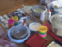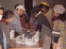 | 釜で茹でた蕎麦をそのまま外で食べようということになって、急 遽テーブルを持ち出し、早速試食会が始まりました。 まどかシェフ特製のめんつゆに、とろろと納豆を用意しました。茹 でたてに卵をからめた『釜揚げ』も大好評。『そばがき』も食べた いと欲張って、いったい何人前を食べたのやら?! 楽しく美味しいひとときでした。 ![]() 昔ながらの釜とざる 小さい子達もたくさん食べました |