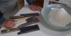 | 今回は、蕎麦粉と小麦粉が7対3の蕎麦です。この割合も いろいろこだわりがあるんですね。 ![]() 包丁一つにもウンチクがあります |